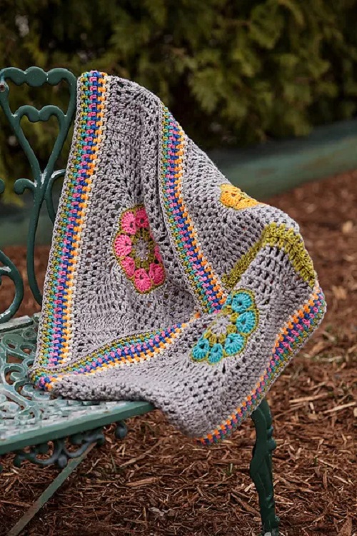 Plucky Knitter Design’s retro summer-weight scarf combines granny squares and African flowers in a unique way. View! Plus, do modify the use of yarn as per the season.