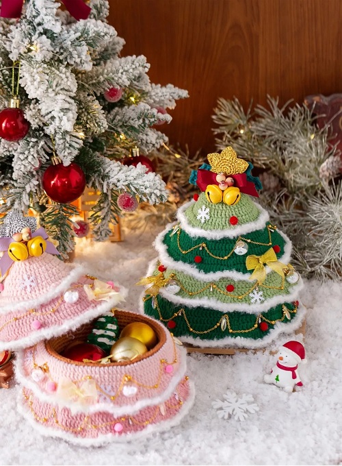 For this Christmas Tree decor, you have to work on the body, stat, decoration, and overall attaching/assembling. Follow the Yarn Over’s video.