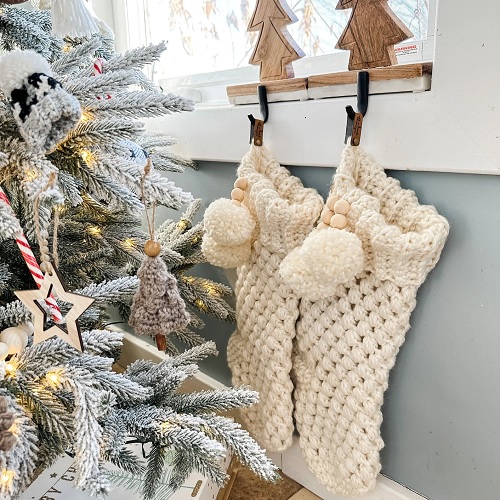 Michelle’s version of holiday decor includes this Puff Stitch Stocking. It is worked bottom up using easy crochet techniques.