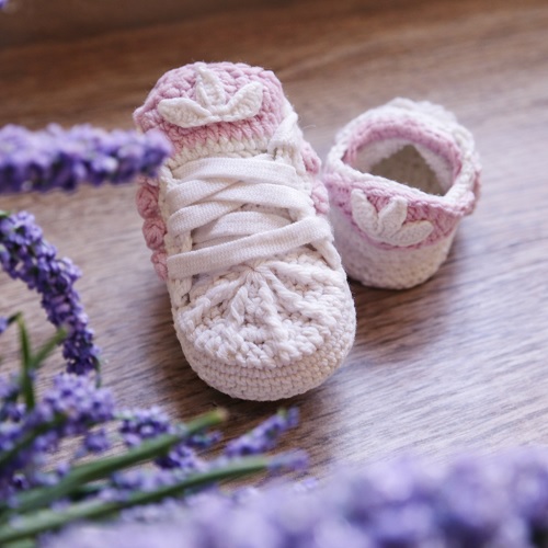 Create this stylish adidas from Arte em Crochê – Flavia Santana. The finished product is 9 cm in size and perfect for a 1-3 months old baby.