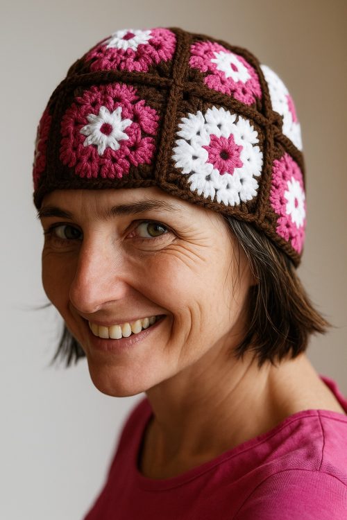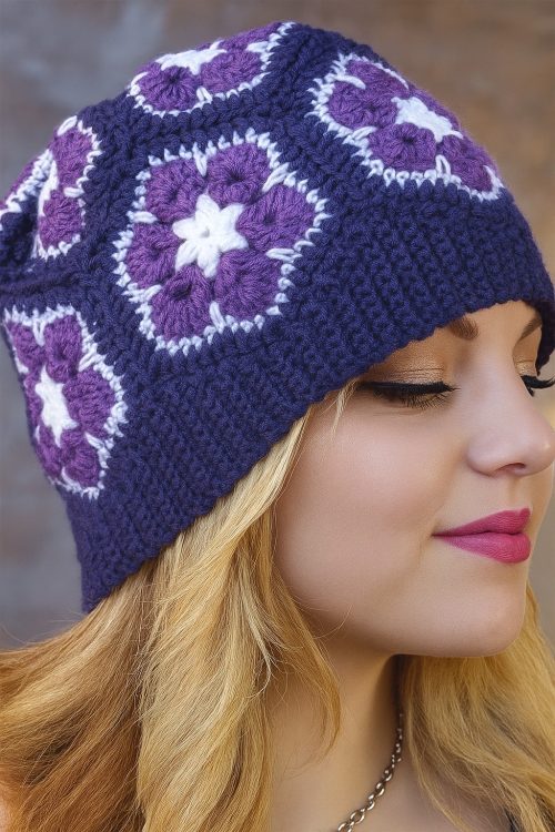 This beanie is assembled from 17 African flower squares. Read Anna Moritz’s instructions to know the arrangement of the motifs and the creation part as well.