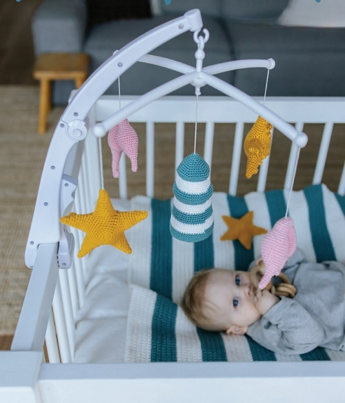 Keep your infant in play mode while you’re busy with other tasks with this sea themed crochet baby mobile accessory pattern. The project includes a lighthouse, a starfish, and a seahorse, all crocheted using the amigurumi technique, working in rounds. By durable Yarn.