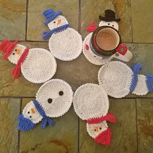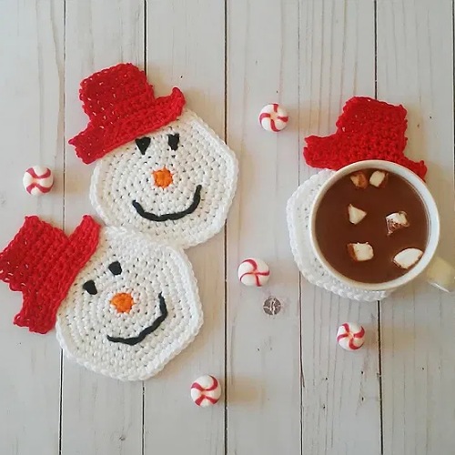 Aurora Suominen’s cute snowman coaster project features a hat and scarves. You can use this one as a thoughtful gift, too.