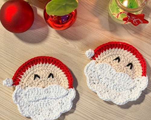 Here’s a cute Santa Claus shape coaster pattern that’s sure to bring a smile to your face every time you see it. The pattern uses a 4 mm hook, scissors, a darning needle, yarn, and other supplies. By Libère tes mailles.