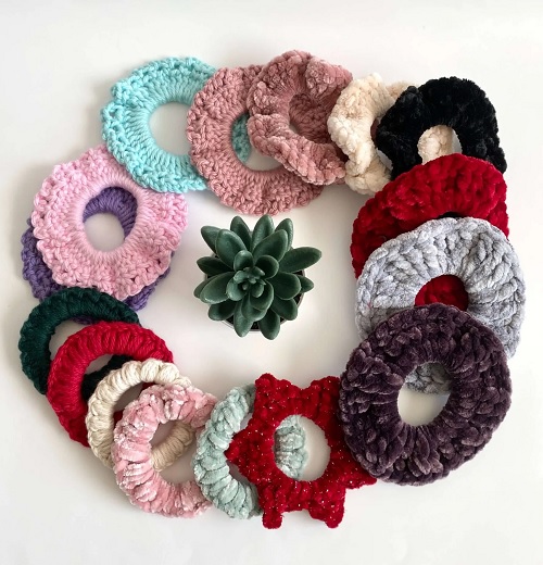 Lovetostayhome shared five easy crocheted velvet scrunchie patterns with different textures. The star one is a unique pattern to work with.