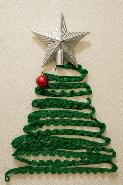 Show off your crocheting skills by making this quirky wall-mount Christmas tree with a huge star topper. Fosbas made this piece in a few minutes with basic stitching techniques.