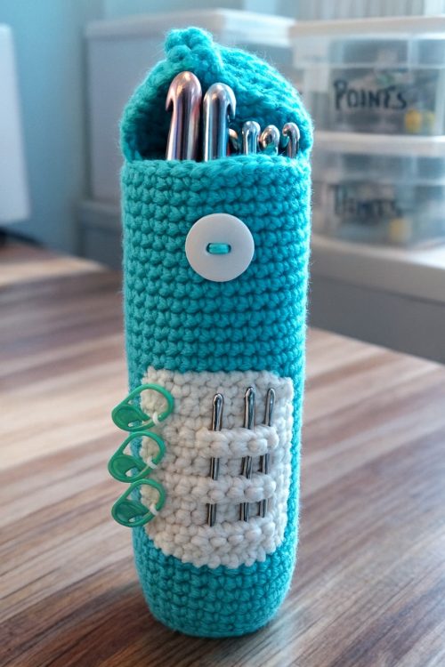 Do you have too many hooks to count, but can’t find anyone when in need? Try stitching this standing case with Margo Swanson, to store them in one place. It also includes optional space to store tapestry needles and stitch markers.