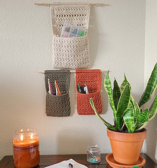 This wall hanging organizer comes in two sizes. So, no matter how big or small an item you’re looking to organize, this caddy has got you covered. Shannon’s pattern has a textured look that will give both your project and your bare walls an aesthetic look.