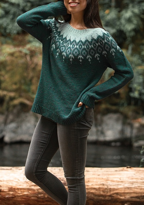 Another winter crewneck sweater for you! It uses ch, hc, dc, ch-1 sp, blo, sl st, and more. Worked front to back, two separate pieces with ribbed cuffs, using beginner-friendly techniques. Shared by Kiksandjackcrochet.