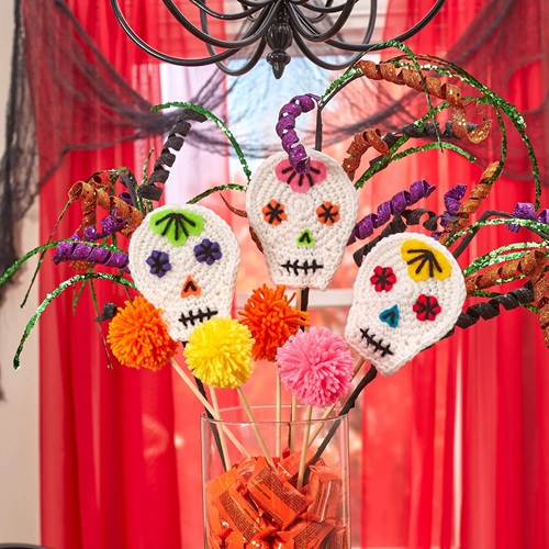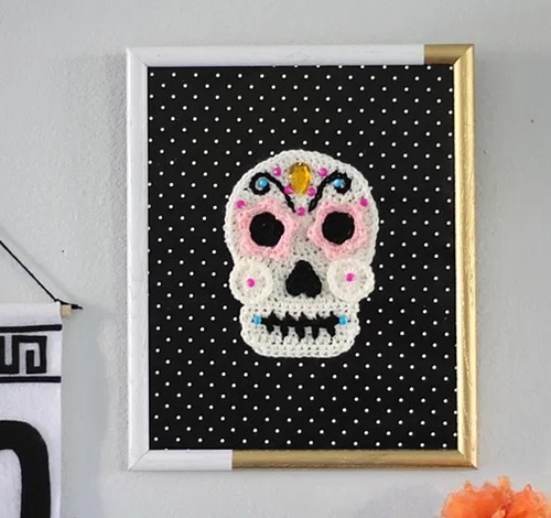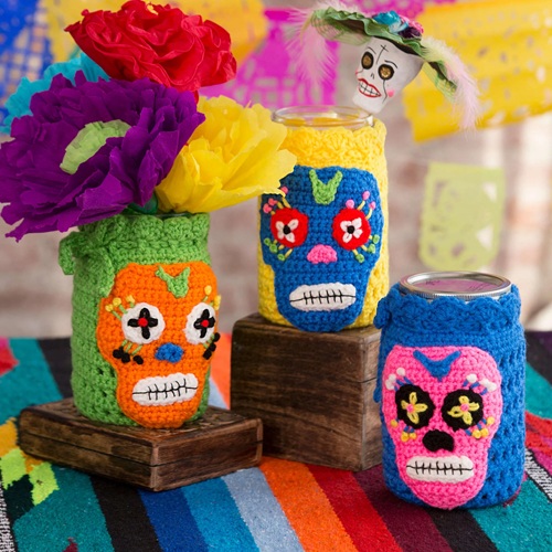 Jessie Rayot crocheted a flower-embellished sugar skull for your home decor. Each one uses easy to follow stitches and gauge. View!