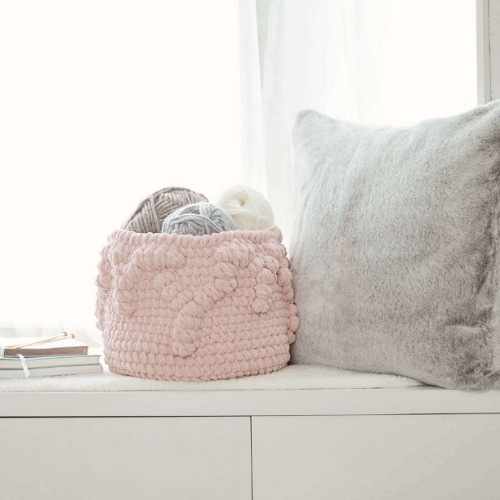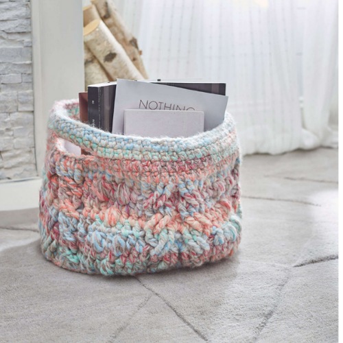 Want to create a cozy and adorable basket for the little toes in the house? Pick Crochet Designer Simona’s creation. It uses 400 meters of 6 mm cord yarn and an 8 mm hook.
