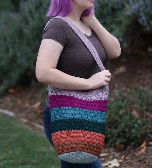 Want to make something fun and creative? Try this striped bag by Debris. She used various colors; you can take your favourite ones.