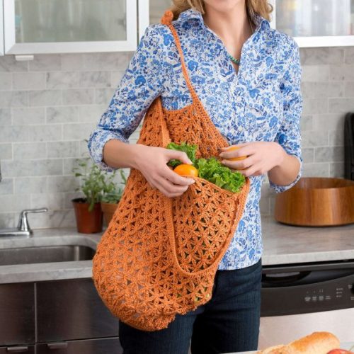The sturdy handles and a mesh stitch make this crocheted market tote bag a perfect functional, fun project. Get the full tutorial in Jess Coppom’s article. ·