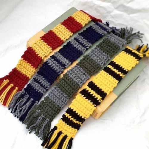Brandi Amanda is behind this Harry Potter Scarf. Crochet it in two colors to fulfill your man’s desire to be a magician in your life.