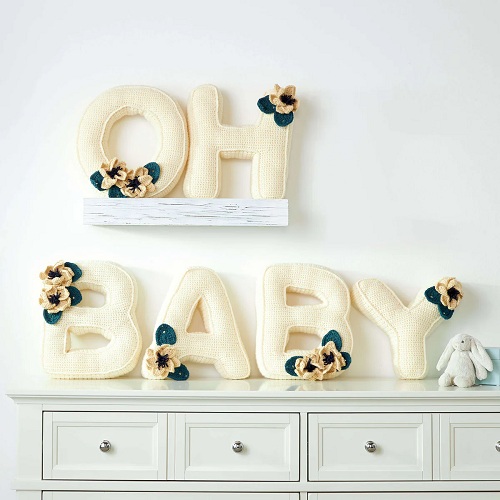 Need a word decoration in your house? Joyce’s one is easy to make. Requires only a 4.0mm crochet needle, worsted weight yarn, filling material, and a sewing needle.