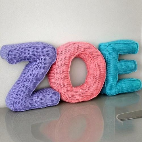 Sarah makes each ZOE letter using single crochet stitches along with the gusset and edges. Well, what does this mean, actually? If you have figured it out, do tell in the comments.