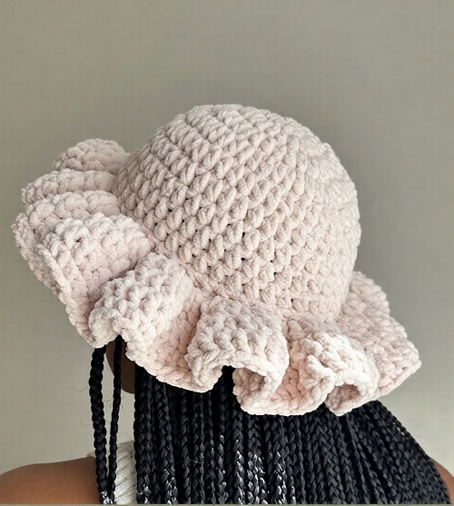 This ruffle hat’s crown is stitched with dcs with ruffled rows. It provides you with warmth and style for every season. Crochet with Amanda.