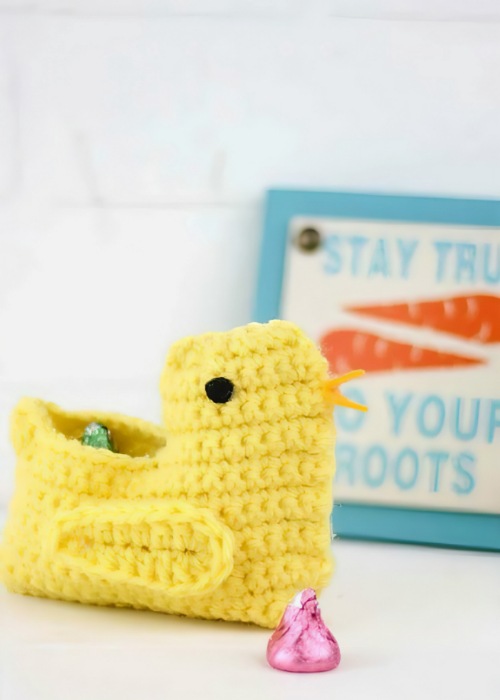 This quick and easy crochet chick basket by Lindsey can easily be made in about 30 minutes. Worked as a flat piece using a specific gauge. It will be a great candy holder for any child to enjoy.