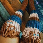 Carissa Browning’s lovable alien’s storage handler uses a gauge of 8 stitches/8 rows with basic crochet stitches. Each one is 25″ around by 14″ tall.