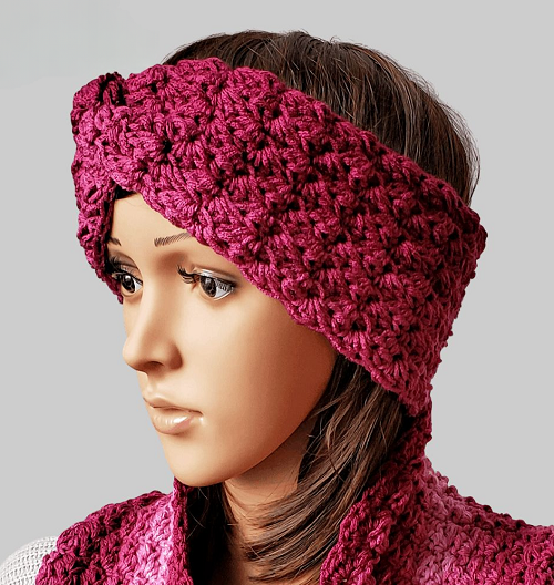 Karen’s Winter Headband Crochet Pattern uses a 5.5 mm crochet hook to work with sc, dc, and hdc stitches only. It is 20 x 4 inches in size. By Rhondda Mol.