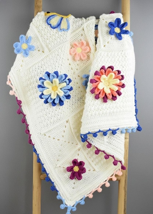 Here you will find patterns with 3D blooms on the base, or some stitched with the bases, and more types of floral blankets. View the list below.