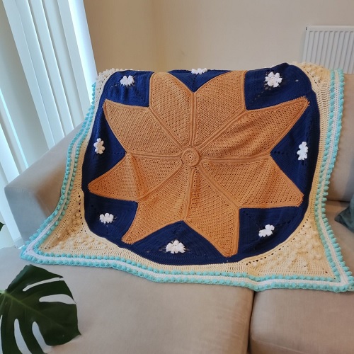 Here is an overwhelming design, not because it’s a blanket, but it’s a SUNFLOWER Floral Blanket. Tonya added a touch of 70s retro to it. Crochet with her.