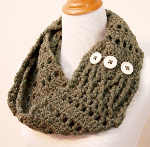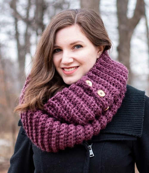 Girls who love the simple and rustic look, this scarf with vintage-looking buttons will match their choice. A bold colored chunky wool, one large needle, and some crocheting skills are all you will need to weave it.