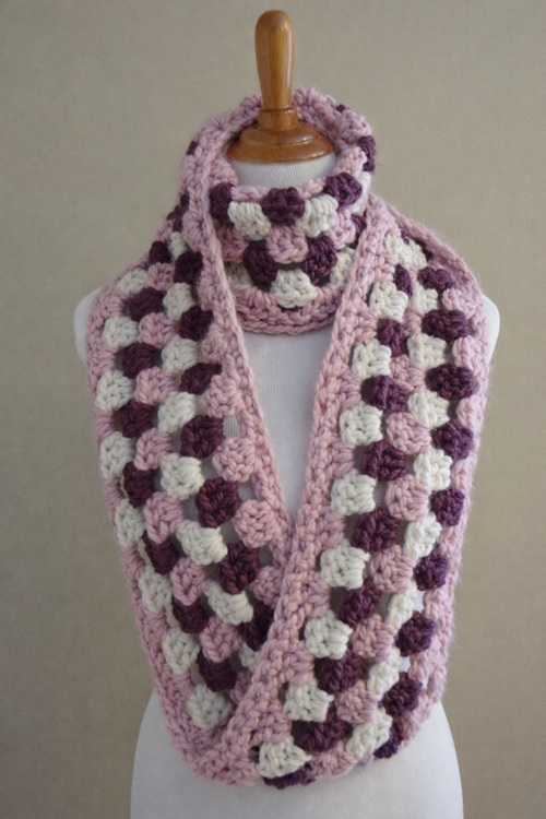 When the temperature falls to a single digit, this Cambridge infinity scarf may come in handy. Made from the Wool-Ease yarn of grey heather shade, this craft uses double and half-double crochet and slip stitches.