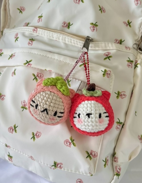 Another Kawaii keychain from Jillian Hewitt! Work in flat panels and rows in a ragdoll style to achieve this. Indeed, a quick and fun project!