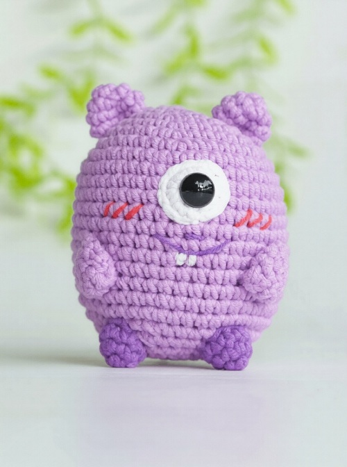 Here’s a new quirky buddy! This one-eyed and squishy belly amigurumi by Amiguworld uses a 3.00 mm hook, 8 mm safety eyes, a needle, and more supplies!