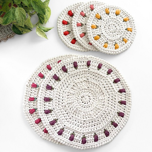 This placement and doily are designed with a beautiful floral design following intermediate techniques. Shared by Erin. It would be a gift for any housewarming party while also showcasing your creative side.