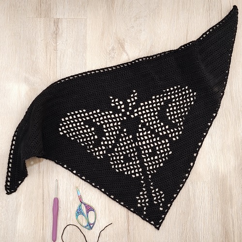 This Midnight Moth Shawlette uses the filet crochet technique and displayes beautif lace design. Liked? Follow Littlejohnsyarn’s free guide.