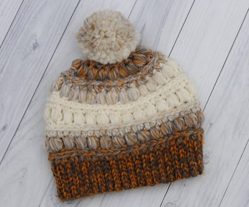 You can recreate this messy bun beanie in an hour with just one skein of wool yarn and single crochet stitches. Isn’t it quite impressive? If you agree, check out this article for the crocheting instructions.