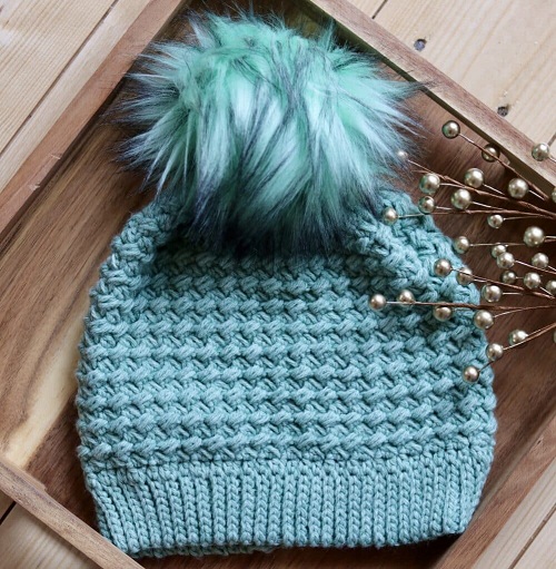 If you want to flaunt your crocheting skills in less than an hour, look no further than this crochet beanie project. It features a pom pom, dual-toned design, and braided texture.