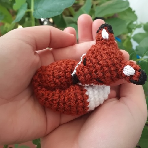The fox is designed using the simple amigurumi technique. Aoife Hardesty stitched the part separately and stuffed.