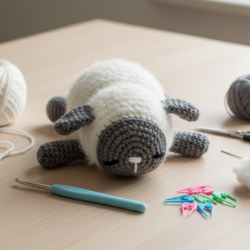 Sleeping Baby Sheep is a combination of worsted weight yarn, fiberfill, and a few more supplies. Do check the details.