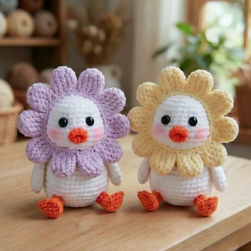 Beginners, be ready, as this pattern is what you are looking for! This project brings the charm of a farm and a garden together. For a detailed tutorial on the beak, feet, and body and head, visit the Amigurumi’s website.