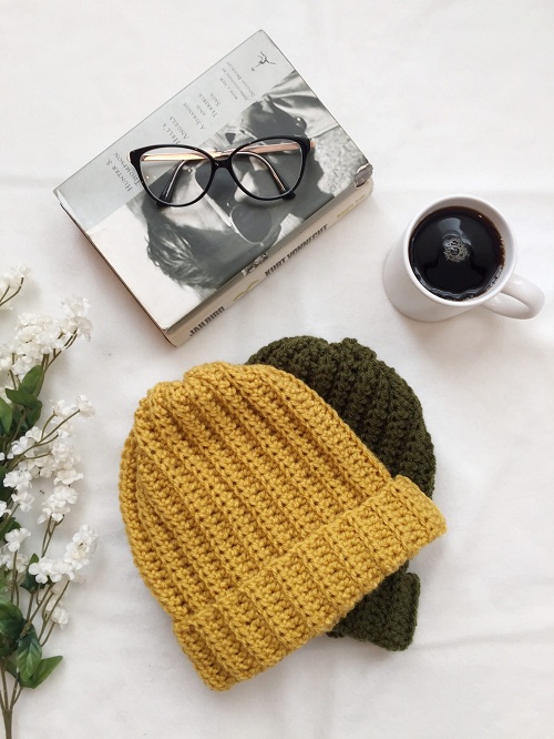 Neena Noel Bell’s Cozy Ribbed Beanie Crochet Pattern is a good beginner-friendly pattern. It fits 21 – 23 inch head sizes.
