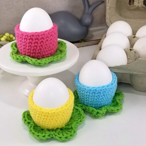 These sleepy bunny egg holders by Moogly will give adorable delight to any messy decorator. Each cozy uses under 20 yards of yarn, a 4.00 mm crochet hook, and more supplies. You can also embroider the face details.