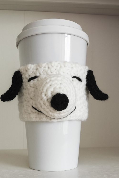 Angie completed this project with just two supplies: a 4.0 mm crochet hook and worsted-weight yarn (white and black). His eyes and smile make the cozy eye catching.
