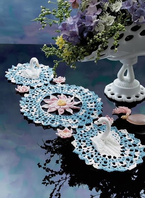 The Sun Blossom Mandala Doily is here to enhance the appearance of furniture, like the one shown. It is beautifully crocheted by Diane Lavos with a group of interesting techniques. Check.