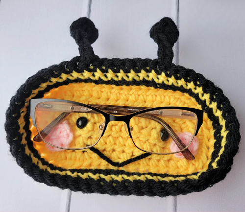 Cute crochet Bumble Bee Glasses Holder is perfect to gift to anyone. Laura made this using simple stitches. It is 6.5″ wide x 4″ long x 1.5″ deep.