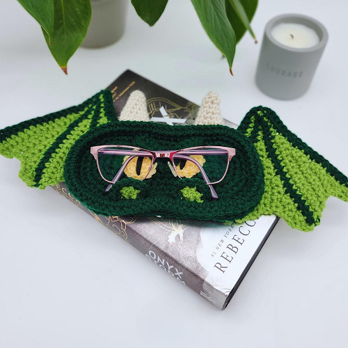 Looking for a fun and safe way to hold your glasses? Kati’s green dragon will be perfect. HA! Crochet it the way she does easily.
