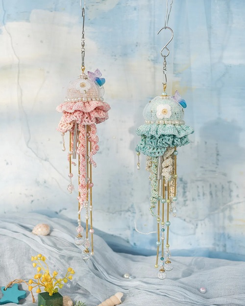 How about this windbell? It has all the accessories that help in ringing. YES! Crochet it with a 2.0 mm hook to add some hear the serene voice. By Susan’s family.