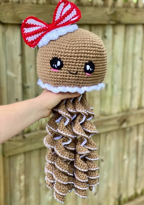 You’ll love this Gingerbread Jellyfish! Its classic tan brown color, smile, innocent eyes, and other details make it a eye grabbling addition. Easy to crochet while watching movies.