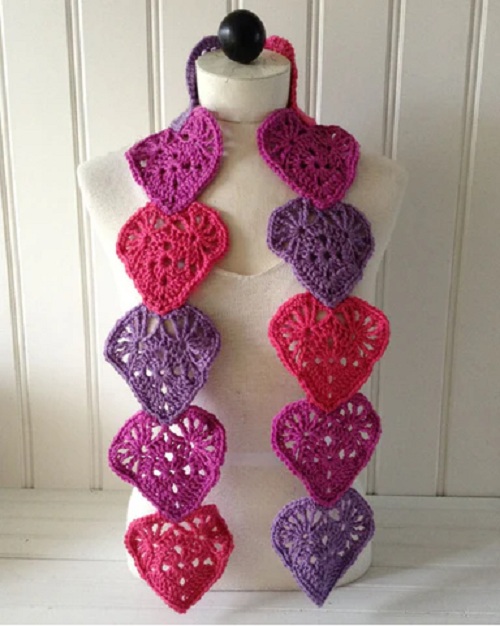 Learn how to make this stylish heart scarf with Maggiescrochet. You can use any color combo to make it look more customizable.